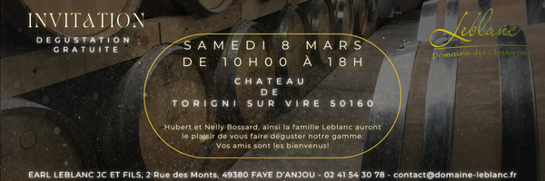C’est avec un grand plaisir que les familles Bossard et Leblanc vous invitent à notre traditionnelle dégustation des vins de notre production au Château de Torigni sur Vire le samedi 8 Mars 2025 de 10H à 18H.